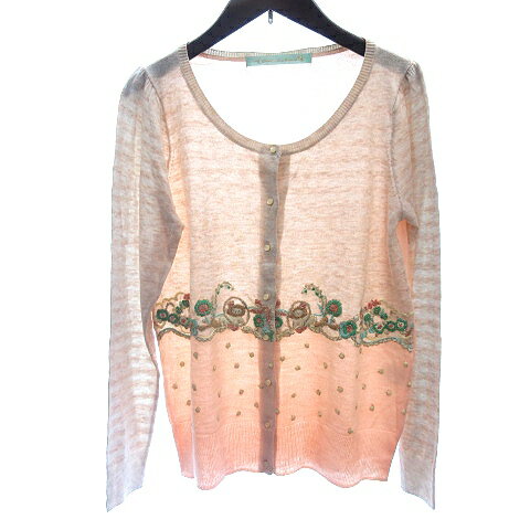 【中古】シェリーラファム Cherir la femme ビジュー付カーディガン M オレンジベージュ マルチカラー /DO ■OS 【ベクトル 古着】 251027