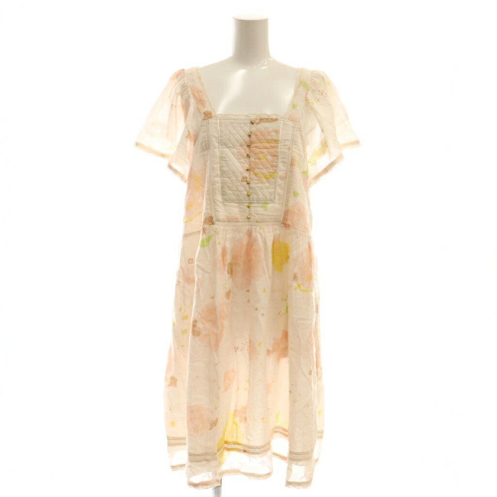 【中古】シェリーラファム Cherir la femme ワンピース ひざ丈 半袖 騙し絵プリント 総柄 M ベージュ 8110900 /HN レディース 【ベクトル 古着】 250912