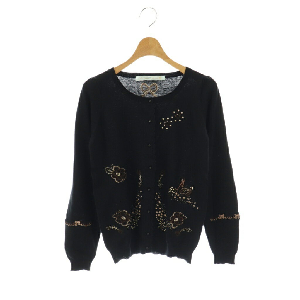 【中古】シェリーラファム Cherir la femme 刺繍 カーディガン 長袖 ニット M ブラック /HK ■OS レディース 【ベクトル 古着】 251028