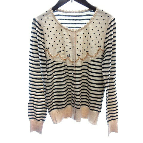 【中古】シェリーラファム Cherir la femme ニット カーディガン ビーズ ドット ボーダー レース 長袖 M ベージュ /AU レディース 【ベクトル 古着】 251114