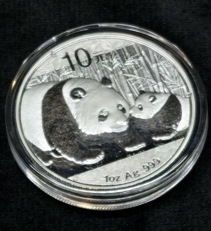 希少 2003年 中国 鏡面竹銀パンダ 10元硬貨 1オンス 銀貨