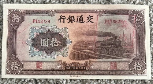 1941年 10元 中国交通銀行 不一致シリアル番号 159d AU
