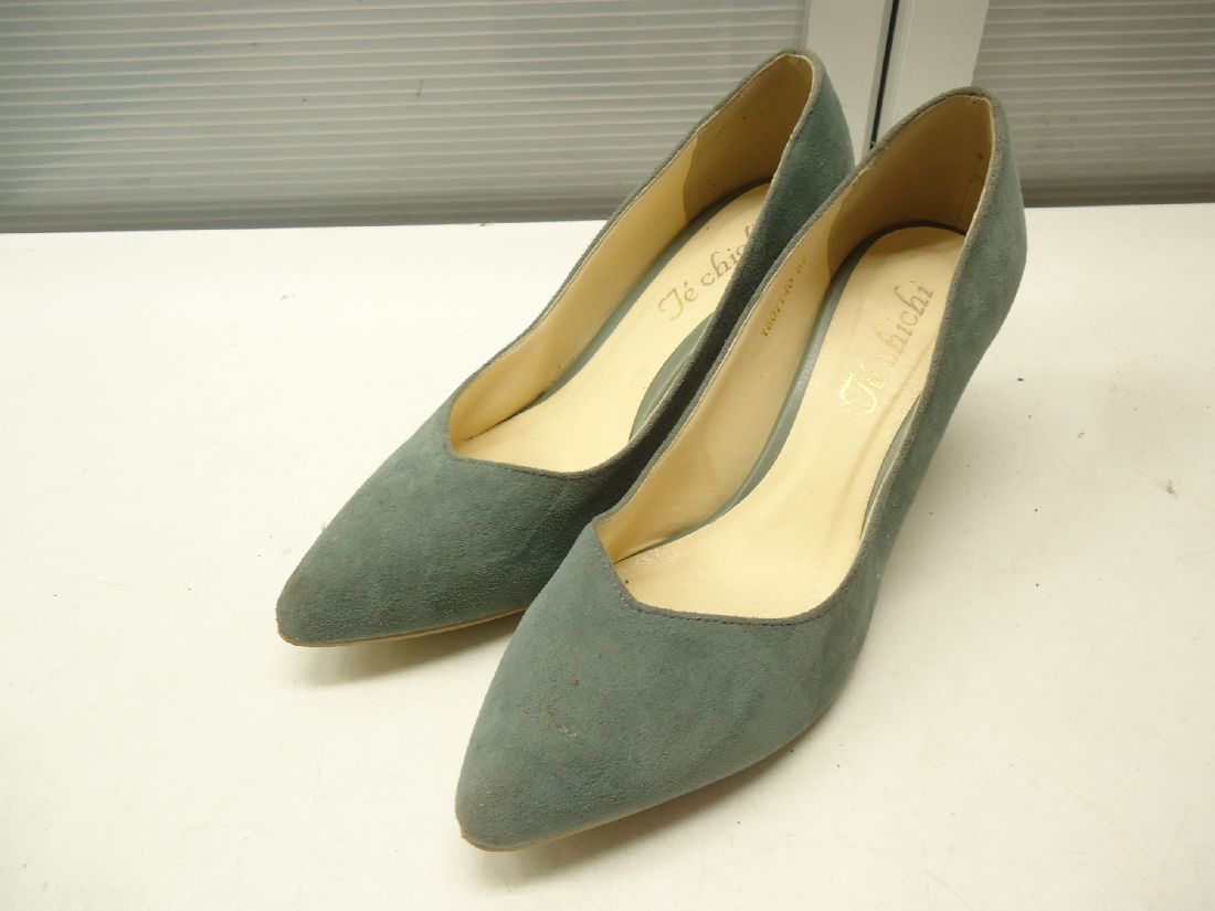 Le Chione/ルキオネ■37(23.5cm程度)■レディース スエード ポインテッドトゥ プレーンパンプス 1807740■GREEN/グリーン/緑色■シンプルなデザインが合わせやすいプレーンパンプス☆少し丸みのあるポインテッドトゥがやさしい印象です◎【中古】