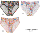 ★お気に入りのランジェリーをいつまでも美しく★*パッドを入れることで、ブラの形が崩れにくくなります。 バストアップ&型崩れ防止にぜひどうぞ♪パッドはコチラ☆ *レースにやさしい専用の洗剤で手洗い。 手洗いする事で、ずっと長持ちします♪洗剤はコチラ☆ 主材料 再生繊維(セルロース)95%、ポリウレタン5% 商品説明 ・やわらかいベア天竺は伸縮性がよい素材 ・ソフトなゴム使いでシンプルなショ−ツ ・ゴムを包み込んだ肌側にゴムがあたらない設計 ※アイテムによって柄の出方が異なりますのでご了承ください。 カラー BL-ブラック IV-アイボリー PI-ピンク サイズ M:ヒップ79〜87 L:ヒップ92〜100 メーカー希望小売価格はメーカー商品タグに基づいて掲載しています【ショーツ】 毎日をもっと楽しく過ごせるように。 嬉しいとき。不安なとき。ひとりのとき。家族といるとき。 どんなときでもHAPPYなものを身につけて、笑顔になってもらいたい。 デザイナー“津森千里”氏のそんな気持ちを表現したブランド。 テーマ:秋 <北欧の秋> キノコ採りに森へと出かけていく女の子たちをコミカルでカラフルに描いた“マッシュルームガール”はすがすがしい北欧の秋へと誘います。 このグループのコーディネートアイテム>>> ナイトアップブラ ビキニハイレッグボーイレングス カップ付きインナー tsumori chisato SLEEP > 欧州の秋