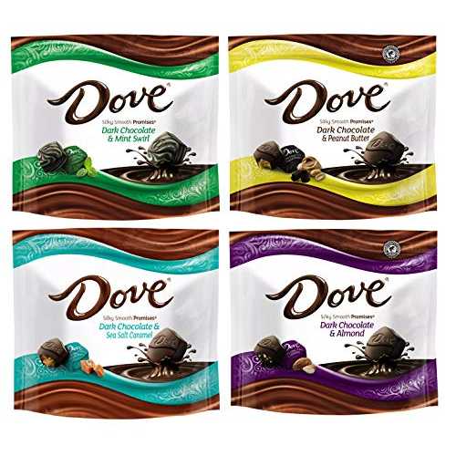 Dove Silky Smooth Promises 7.6 オンス チョコレート キャンディー - 究極のダーク バラエティ 4 パック (ミント スワール、ピーナッツ バター、シー ソルト キャラメル、アーモンド) Chocolatier Dove Silky Smooth Promises 7.6 Oz Chocolate
