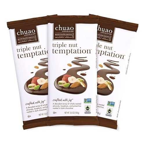 Chuao Chocolatier Triple Nut Temptation Gourmet Dark Chocolate Bars For Gift Baskets, Birthday, Thank You, Care Package 3 Pack, 2.8 oz Each
