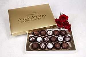 Andy Anand シャンパン、ラム、アイリッシュ クリーム & カルーア ベルギー 16 個 チョコレート トリュフ ギフトボックス入り & グリーティングカード、おいしい、ジューシーで神聖な誕生日 クリスマス 記念日 ANDY ANAND CHOCOLATIER Andy Anand Cha