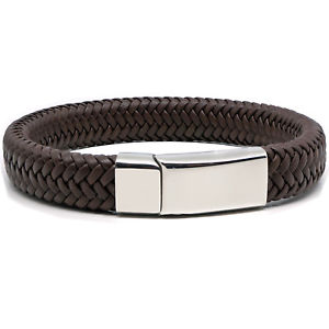 【送料無料】メンズブレスレット mensレザーブレスレットボックス 24cm16cmmens brown chunky wide leather bracelet steel clasp gift box 16cm to 24cm