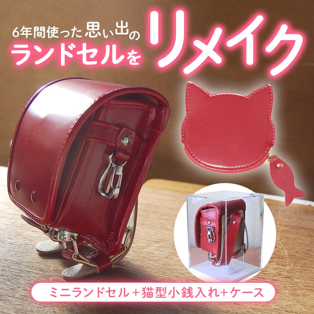 32年の実績 ランドセル リメイク【 往復 送料無料 】思い出の ミニランドセル ケース付 猫 小銭いれ セット 可愛い猫モチーフのコインケース付 卒業 記念 就職 祝い 結婚 プレゼント ミニチュア 工房 mini かわいいランドセル リサイズ ミニランドセル加工 アイピーシー