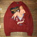 セクシーなピンナップガール×目玉と漢字のプリントが和洋のクラシカルな雰囲気を醸し出す、10ozの裏毛パイルスウェット。 オーセンティックな定番のシルエット。 【素材】 綿100% 【サイズチャート】 Mサイズ:身丈64cm、身幅54cm、肩幅46cm、袖丈58cm Lサイズ:身丈67cm、身幅57cm、肩幅49cm、袖丈59cm XLサイズ:身丈69cm、身幅60cm、肩幅52cm、袖丈60cm