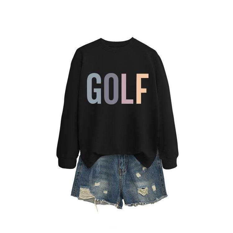 トレーナー レディース 秋冬 ゴルフウェア カラフルロゴプリント 長袖 丸首 スウェットシャツ プルオーバー トップス 綿混紡 普段使い 部屋着 大 Red