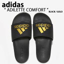 adidas アディダス サンダル スリッパ ADILETTE COMFORT BLACK GOLD アディレッタ コンフォート ブラック ゴールド EG1850 GY1946 ロゴ スライドサンダル シャワーサンダル ブラック ホワイト シューズメンズ 男性用【中古】未使用品