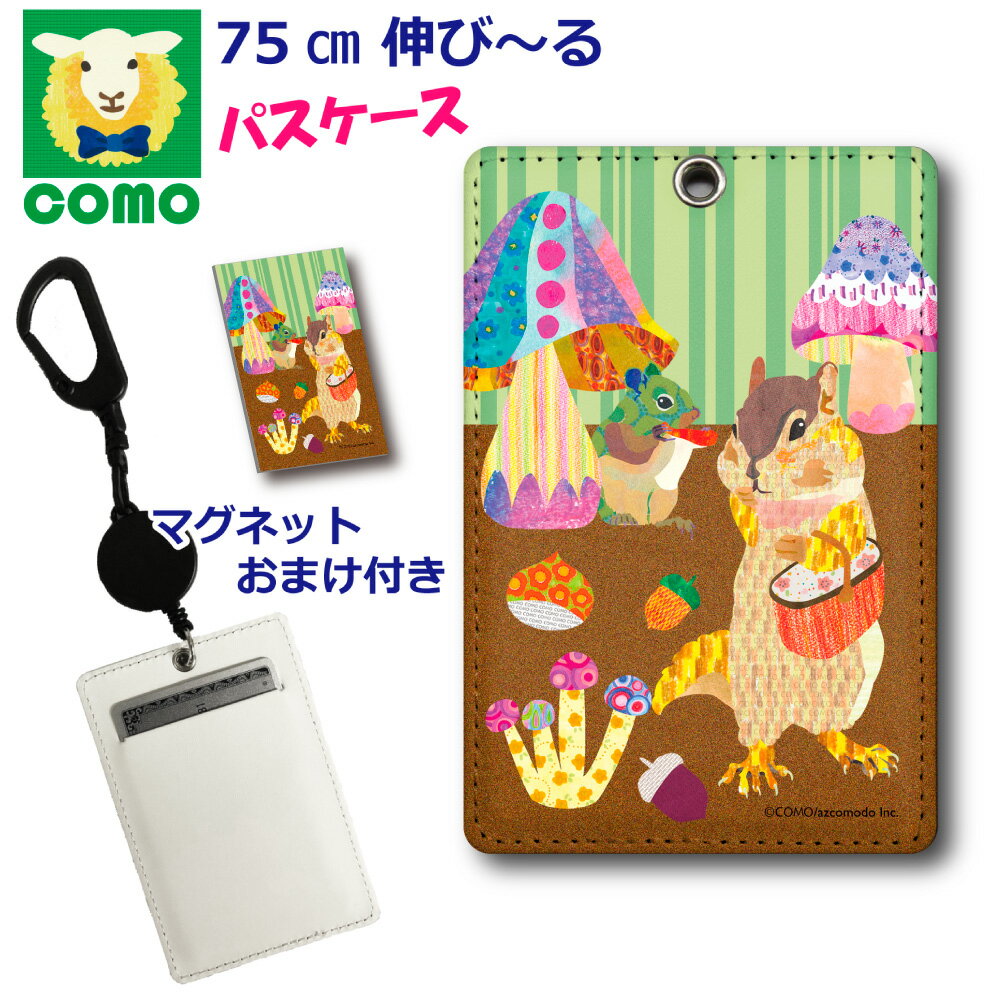 【ブラックフライデー 10%OFFクーポン】 パスケース リール付き アニマル柄 定期入れ 子供用 高校生 学生 社会人 定期ケース 女の子 伸びる リール カード入れ 動物 COMOデザイン 買物リス キノコ どんぐり かわいい