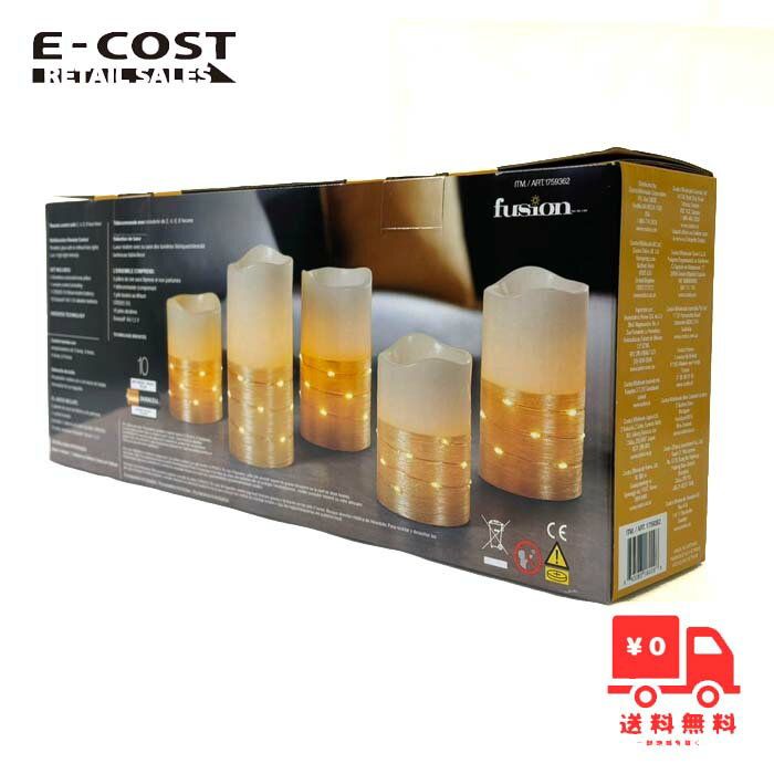 LEDキャンドル5本セットで、空間を暖かく彩りましょう。本物のキャンドルのような見た目で、火を使わずにキャンドルが灯ります。各キャンドルの周りには、妖精のような光が幻想的な輝きを放ちます。キャンドルのみ、またはキャンドルとライトの両方を楽しむことができます。付属のリモコンでタイマーをセットしておけば消し忘れもありません。 セット内容 クリーム色の火を使わないLEDキャンドル5個 多機能リモコン1個(CR2025 3Vリチウムボタン電池付属) デュラセル電池10個付属(各キャンドルに2個使用) 構造 サイズ 長さ:7.6cm / 幅:7.6cm / 高さ:Sサイズ10.1、Mサイズ12.7、Lサイズ15.2cm 重量: 1.45 kg 素材: ワックス 原産国: ベトナム ブランド: fusion