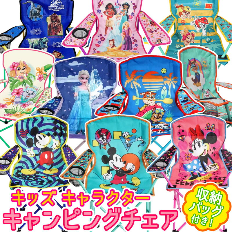 即納 2025最新★キッズ キャラクター キャンピング チェアディズニー プリンセス エルサ オラフ アナ雪 モアナ ラプンツェル シンデレラ 折りたたみ 椅子 子供用 いす 椅子 アウトドア 折り畳み キャンプ バーベキュー 軽量 軽い コンパクト かわいい 収納袋 コストコ