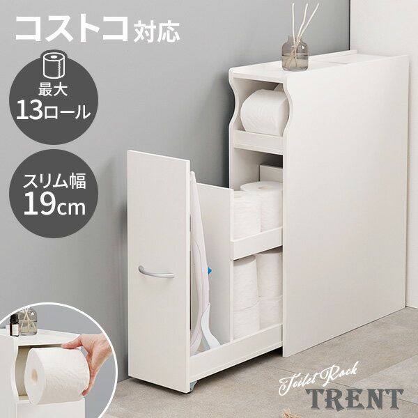 【お得クーポン配布中】コストコ対応 高さ50cmブラシ対応 傾斜収納付きトイレラック 幅19cm【Trent】トレント(トイレ収納 おしゃれ コンパクト スリムラック トイレットペーパー収納 隙間収納 流せるトイレブラシ サニタリー 生理用品 収納棚 シンプル 掃除用具)