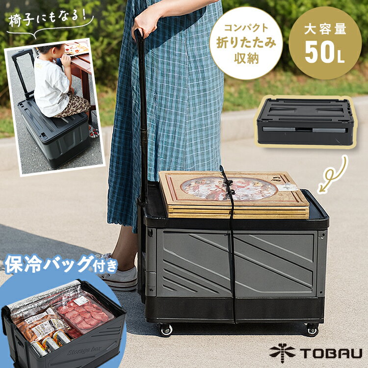 キャリーカート 保冷バッグ付き 折りたたみ 大容量 コンテナ キャリーワゴン キャスター付き コストコ 買い物 運搬 防災グッズ収納 ペットボトル まとめ買い BBQ キャンプ ピクニック 運動会 新製品 TOBAU ピザ お寿司 耐荷重50kg コンパクト収納