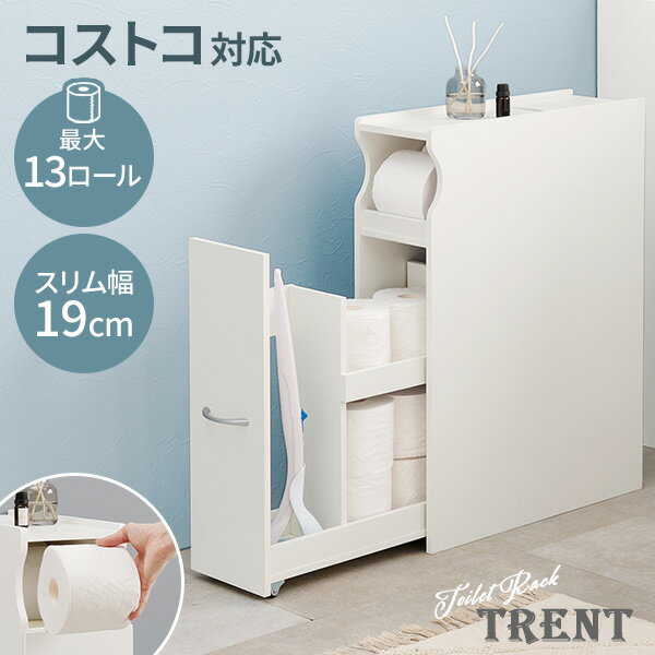 トイレラック 幅19cm スリム 木製 ホワイト トイレ収納 トイレットペーパー収納 トイレ用ラック 北欧 省スペース 白家具 コンパクト おしゃれ キャスター コストコ対応