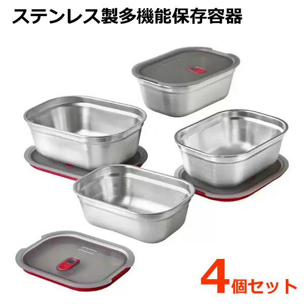 【送料無料】Black & Blum ステンレス製 多機能 保存容器 4個セット 蓋付き 弁当箱 電子レンジ対応 食洗機対応 冷凍庫OK 真空蓋ロック コンパクト収納 食品保存 保存容器 フードボックス キッチン コストコ