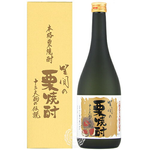 通常商品在庫商品常温便配送品箱無し箱別途購入(▼)で包装対応メッセージカードOK(詳細は ▼)ボトルラッピング不可栗の香りとほのかな甘さ!栗の収穫量日本一(※1)を誇る栗の産地・茨城県。なかでも笠間市(旧岩間町)は、県内を代表する栗の栽培地域です。昼夜の温度差、保水性・通気性に優れた土壌。そうした栗づくりに適した環境が、美味しい「笠間の栗」を育ててくれます。強い甘みと上品な味わい、そして大きな栗の粒。こうした笠間市の豊かな自然の恵みを活かすべく、地元笠間市商工会の有志(※2)により「栗焼酎」づくりのプロジェクトが始動。地元茨城の酒造メーカーの協力を得て、本格栗焼酎〈笠間の栗焼酎 十三天狗の伝説〉シリーズは生まれました。名産の栗の魅力がぎゅっと詰まった絶品の焼酎を、是非ご賞味下さい。栗 たっぷり、75%以上使用!定番商品〈笠間の栗焼酎 十三天狗の伝説〉。製造は水戸市の明利酒類(※3)が行っています。原材料の栗はもちろん、地元笠間市岩間地区で収穫されたもの。殺虫処理を行っていない栗の鬼皮(おにかわ)だけを剥いて使用しており、原材料のじつに75%以上が栗 という贅沢なつくりの本格栗焼酎です。味わいとおすすめの飲み方口あたりはやわらかで、芳醇な栗の香りとほのかな甘さが口の中にふわっと広がります。あえて渋皮を残した栗を使っているためか、後味に甘ったるいしつこさが無くすっきりしているのもポイント。まずはストレートで飲んでいただきたい美味しさです。もちろんロック、お湯割りなどでもお楽しみいただけます。当店ではとりわけ女性のお客様からの御用命が多い本品、ぜひご賞味ください。※1 農林水産省 統計情報 公表資料名「令和5年産西洋なし、かき、くりの結果樹面積、収穫量及び出荷量」(令和6年4月10日公表)に基づき記載※2 現在は(株)うまい栗焼酎を作る研究会によって企画運営が行われています。※3 明利酒類 日本酒〈副将軍〉や本格焼酎〈漫遊記〉、梅酒〈百年梅酒〉などの醸造元として知られるほか、最近では人気Vtuberとのコラボ商品をリリースするなど、意欲的な商品づくりを行っています。■企画:(株)うまい栗焼酎を作る研究会 / 茨城県笠間市下郷4055■製造者:明利酒類(株) / 茨城県水戸市元吉田町338■品目:本格焼酎(単式蒸留焼酎(旧 焼酎乙類))■格付・分類等:栗焼酎■原材料名:栗(笠間市産)、米麹(国産米)■アルコール度数:25%■容量:720ml■容器:瓶(スクリューキャップ)■JAN:4978657247429