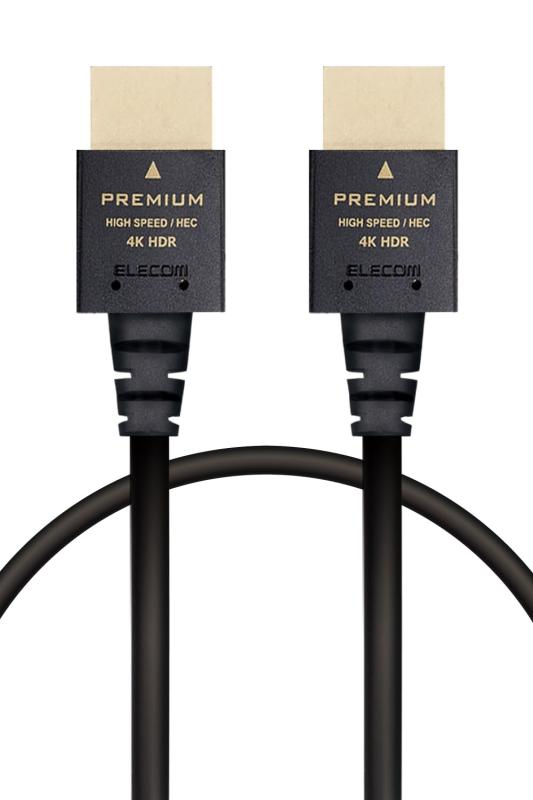 エレコム HDMI ケーブル 1m 細い プレミアム 4K2K(60Hz) 【Premium HDMI(R) Cable規格認証済み】 18Gbps テレビ・パソコン・ゲーム機などに eARC 黒 ECDH-HDPES10BK