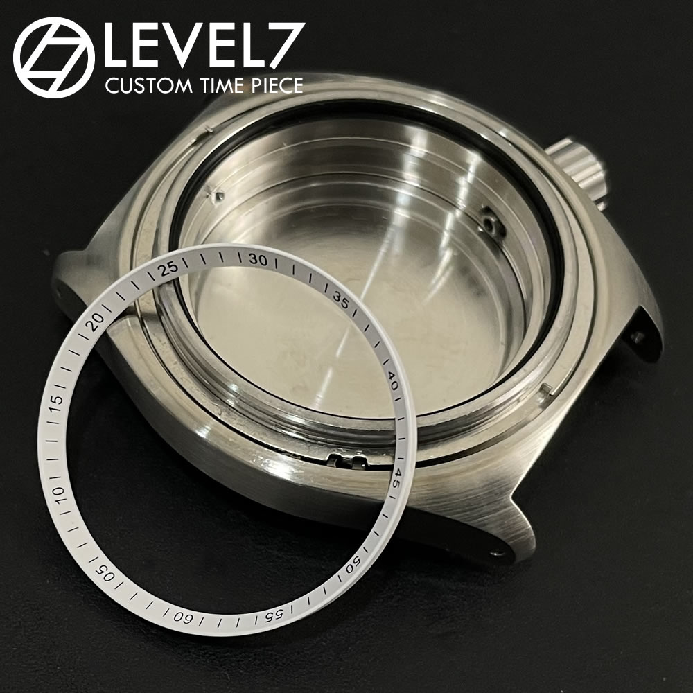 LEVEL7 2014年3月、『オンリーワン』をブランドコンセプトにオールハンドメイドのレザークラフトブランド【LEVEL7】として誕生。 2018年、コダワリを100%製品に詰め込むため、自社にレザー工房を構え自社製造を開始。 2020年、これまで10年以上に渡り、腕時計の販売を行って来たからこそ分かる品質と、そのノウハウを最大限に活かしオリジナル腕時計の販売を開始。 2021年、構想より1年半、自在にカスタマイズが出来る自社組立の日本製(川越製)ウォッチをリリース。 大人の男が本気で遊べるファッションアイテムをモットーに製作、販売をしています。 CHAPTER RING 商品説明 LEVEL7 カスタムウォッチや、SEIKO 7s26-0020を継承するSKX007/009などに対応したチャプターリング。ホワイト×ブラックインデックス 5/10/15/20/25/30...アラビア数字表記。 個性あるオリジナルウォッチのカスタマイズパーツにご使用頂けます。 商品スペック ■カラー:ホワイト ■タイプ:インデックスあり ■サイズ:直径:約30MM/高さ:約2MM ■対応モデル: LEVEL7 カスタムウォッチ(ケース直径42MMの規格) セイコーSKX007、SKX009&SKX011、7s26-0020シリーズ セイコー5SRPDxxシリーズ(SKX007代用品) 注意事項 カスタマイズの際に生じた破損やトラブルなど、当社では、一切保障し兼ねます。 予めご理解頂き、自己責任にて、作業下さいませ。