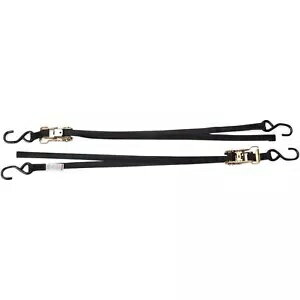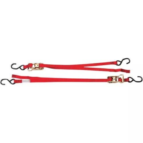 使用荷重181kg。幅25mm×長さ1.7m。しっかりとロックできる標準装備のモーターサイクル用ラチェット・タイダウン。長距離の輸送でモーターサイクルやATVを固定するために必要とされる強力なテンションを実現します。ストラップには、幅広グリップラチェットハンドル、2,041kg耐摩耗ナイロン製ウェビング、固定側にフルサイズのビニールコートS字フック、調整側にノンコートスチール製S字フックが付いています。1セット2本入り。