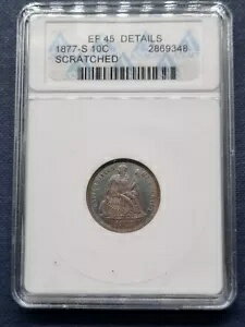 1877 S シーテッド リバティ ダイム ANACS XF45 詳細 Scra。レア オールド ブルー ホルダー #76616