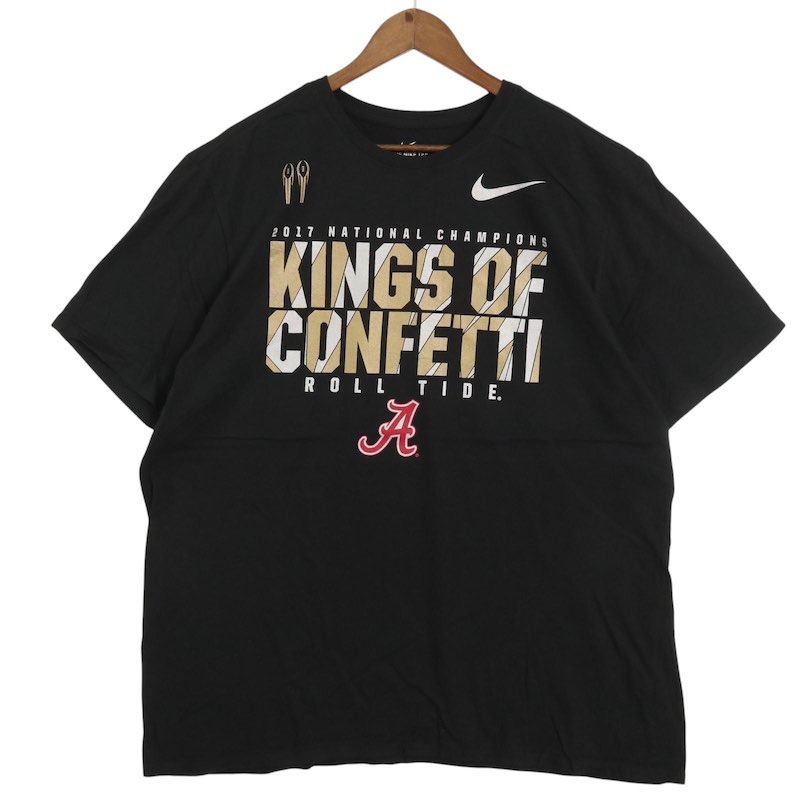 大きいサイズ メンズUS-2XLサイズ ナイキ クルーネック半袖プリントTシャツ 2017 NATIONAL CHAMPIONS NCAA Alabama Crimson Tide ブラック 胸囲約126cm NIKE スウッシュ スウォッシュ アメリカ古着 USED BIG hsc-0644n【中古】
