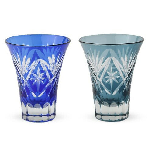 J-kitchens 郷愁 切子 ペア グラス カップ 冷酒 盃 径6.2×7.8cm 60cc 星扇 ブルー & インクブルー 美匠 Current Model