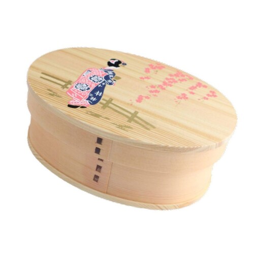 j-kitchens 曲げわっぱ 弁当箱 18cm × 13.5cm × 6.8cm 700ml ウレタンコーティング/絵:蒔絵調紀州加工 Current model