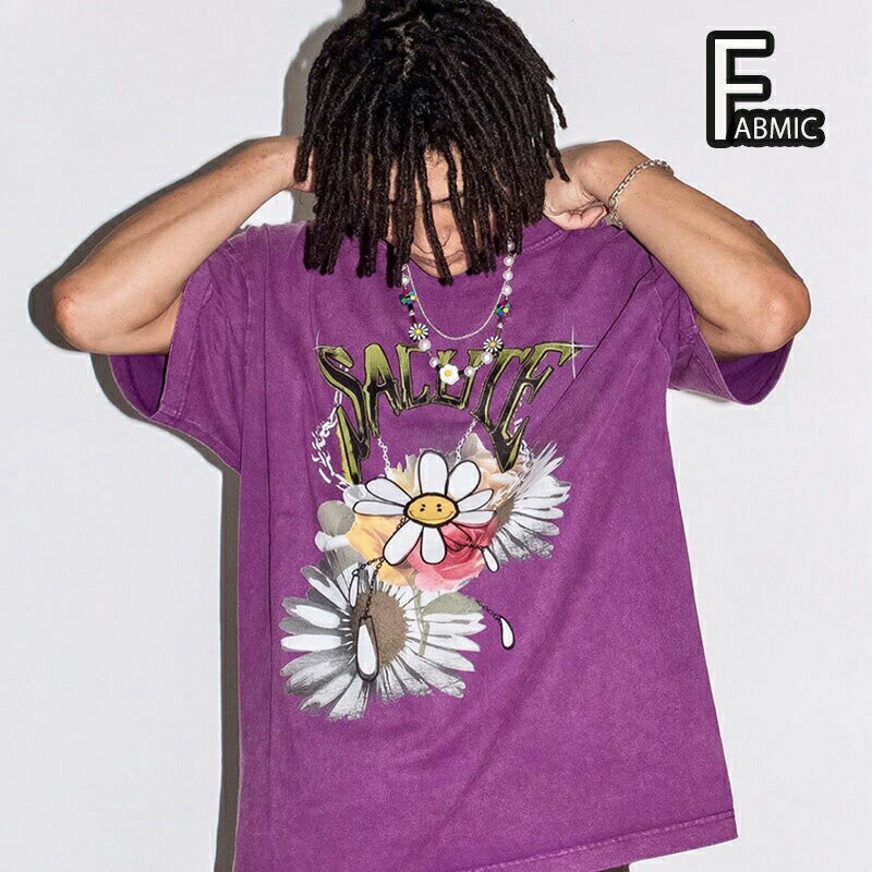 【残り1点】SALUTE サルーテ DAISY WASHED 半袖 Tシャツ ヴィンテージ 仕様 スマイル フラワー 夏 紫 ヒップホップ ラッパー ストリートファッション ストリート