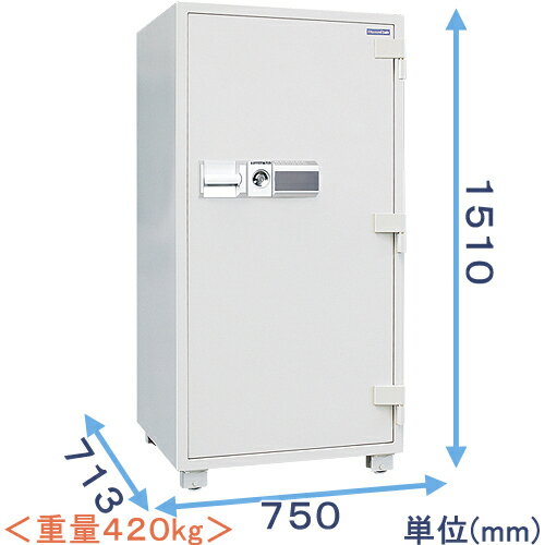 テンキーボタンによる暗証番号と鍵で、扉を開閉するタイプの耐火金庫です。 暗証番号は、任意に変更が可能ですので、ご希望の暗証番号での使用をされたい方、店舗・事務所などで、金庫を使用される担当者が代わる時には番号を変えたいという方に、お薦めです。 暗証番号と鍵で開錠する二重ロック式ですので、安心してご使用いただけます。 ※暗証番号には、電話番号・誕生日等のわかりやすい番号を設定されないよう、ご注意ください。 ■基本仕様 ■型式:テンキー式耐火金庫(DDE150) ■外寸:幅750×奥行き713×高さ1510mm ■内寸:幅570×奥行き465×高さ1250mm ■重量:420kg ■内容量:331L ■カラー:ライトグレー ■付属品:鍵2本・引出し用鍵2本・取扱説明書 ■装備:棚板3枚、鍵付き引出し1個※引出し内寸(幅530×奥行き335×高さ90mm) ■性能:一般紙用90分耐火試験合格(SP規格※スウェーデン国立研究所規格) ■開錠方法:暗証番号+鍵 扉は閉めた時点でロックがかかりますので、扉を開ける際にはその都度、暗証番号の入力が必要です。 鍵で施錠をすれば、鍵と暗証番号入力の二重ロックになります。 代金引換不可 ※耐火金庫はメーカー直送の為、「代金引換」が出来ません。 → 『商品のお届け方法について』 ※この商品は、【送料・搬入設置費】の見積りが必要です。 メーカー希望小売価格はメーカーカタログに基づいて掲載しています ※在庫少 ● 関連商品 同サイズの指紋認証式 もう少し大きいタイプ もう少し小さいタイプ 安心の2時間耐火品質重視【日本製】 耐火+こじ開けられにくい【強化型】 SPS150 DDE170 DE122 KC55-2E KCJ55-2ER ※この商品は、火災から収納物を守る目的で作られた「耐火金庫」です。 【 工具等の破壊に対しては強くありません 】 扉のこじ開けや破壊から収納物を守る「防盗性能」も重視される場合はこちら。 >>テンキー式強化型耐火金庫 金庫診断士推奨品 型式 テンキー式耐火金庫(DDE150) 外寸 幅750×奥行き713×高さ1510mm 内寸 幅570×奥行き465×高さ1250mm 重量 420kg 内容量 331L 付属品 鍵2本・引出し用鍵2本・取扱説明書 装備 棚板3枚、鍵付き引出し1個:引出し内寸(幅530×奥行き335×高さ90mm) カラー ライトグレー 性能 一般紙用90分耐火試験合格(SP規格※スウェーデン国立研究所規格)(90分加熱した時点で、庫内温度150℃以下で中に入れた新聞紙が判読可能) 開錠方法 暗証番号+鍵 製造国 韓国 メーカー ダイヤセーフ株式会社 ◇商品画像には、防犯上の観点から、カンヌキの本数と場所は表示しておりません。 ◇断熱材特性により質量・内外寸法に若干の違いが生じる場合がありますが、性能に違いはありません。 ◇サイズは最も出っ張った部分を含めた最大寸法です。 ◇性能向上の為、通知なく仕様を変更することがあります。 ◇色については画像解像度の特性上、実際の商品とは多少異なる場合があります。