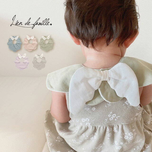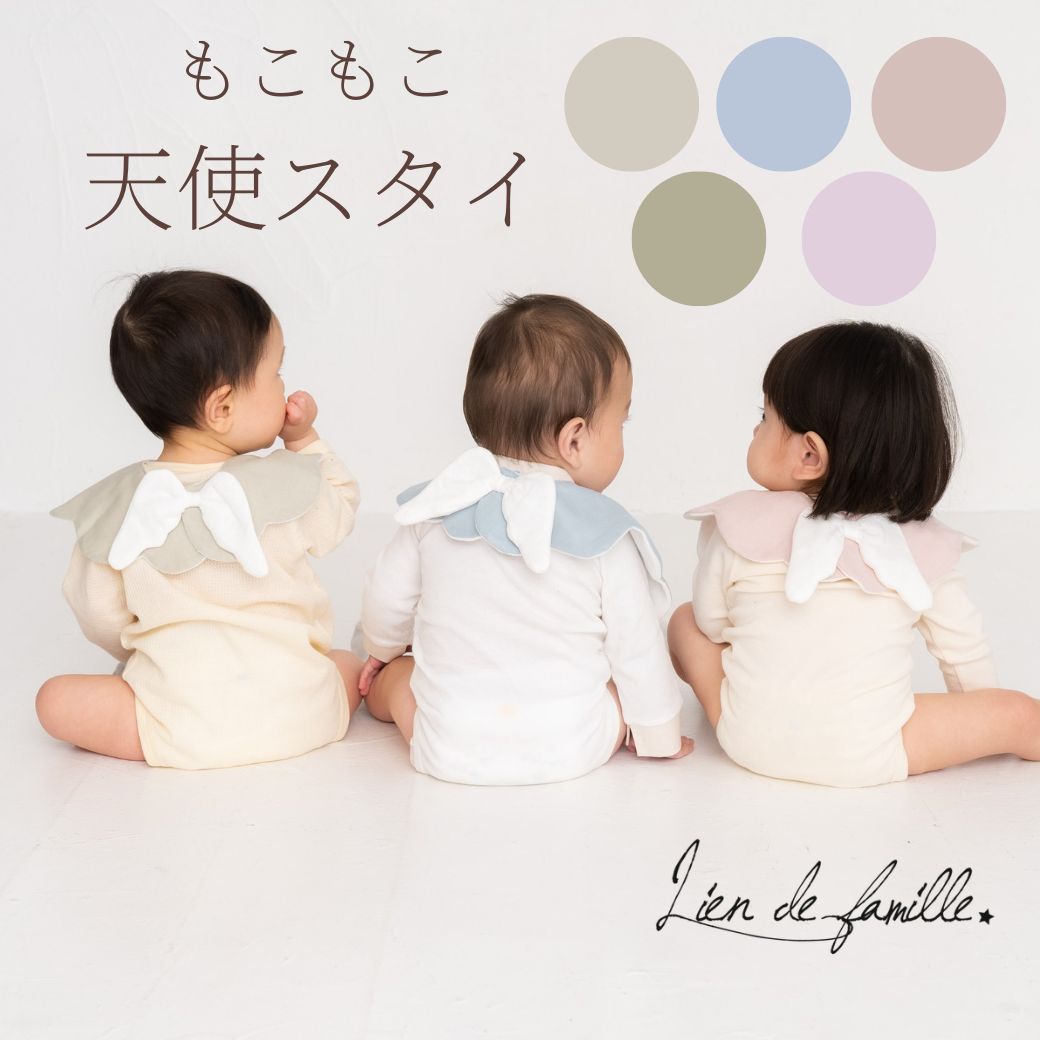 Lien de famille リヤンドファミーユ もこもこ天使スタイ(スタイ 羽 天使 かわいい よだれかけ 女の子 おしゃれ フォーマル ビブ 360度 ベビー 子供 無地 シンプル よだれ 吸水 綿 0歳 日本製 出産祝い ギフト おすすめ)