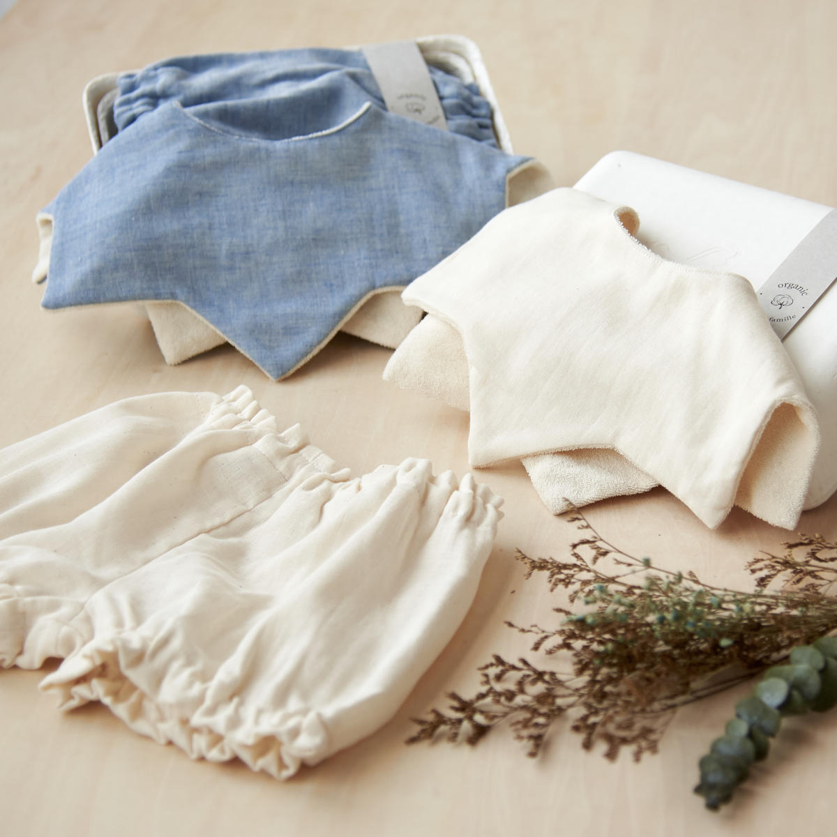 3色から選べる 3点セット スタイ ヘアバンド ブルマ はなことばシリーズ Lien de famille リヤンドファミーユ 出産祝い プレゼント 赤ちゃん 男の子 女の子 新生児 おしゃれ