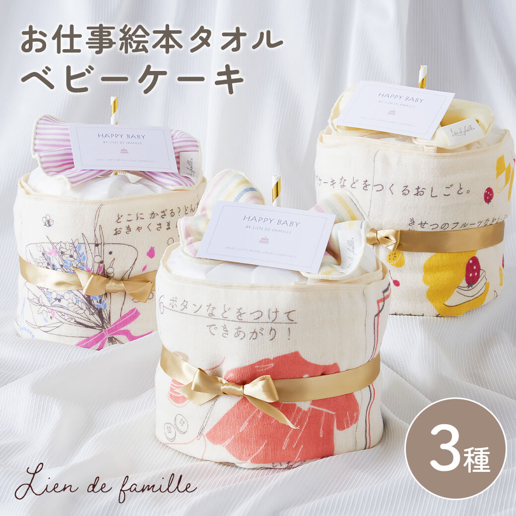 出産祝い おむつケーキ 「お仕事絵本タオルのベビーケーキ」 (電報なし) 送料無料 Lien de famille 日本製 オーガニックコットン 綿100% ナチュラルムーニー ガーゼ おしゃれ 男の子 女の子 赤ちゃん 誕生祝い お祝い ギフト プレゼント 誕生日 即日発送 翌日配達