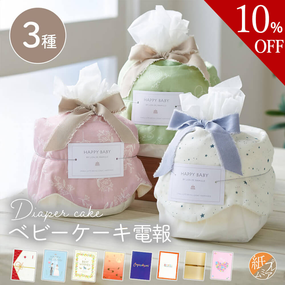 【楽天スーパーSALE 10%OFF】祝電 出産祝い 「バーピービブのベビーケーキ」と電報セット 送料無料 お祝い おむつケーキ Lien de famille 日本製 綿100% スタイ かわいい 男の子 女の子 赤ちゃん ギフト プレゼント 電報 メッセージ 誕生祝い 即日発送 翌日配達