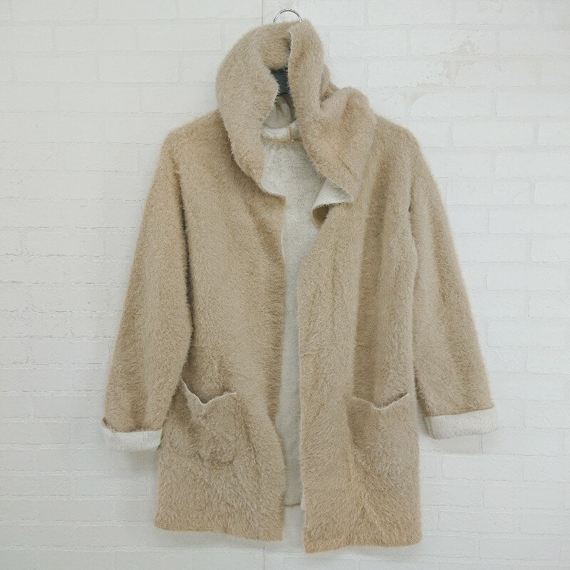 ■ Dearer フェイクファー 長袖 フーディー カーディガン ベージュ レディース E 【中古】
