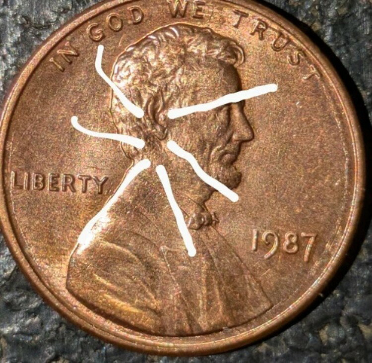 1987年 1セント ペニー ミントステート レッドダイエラー 表面 耳の周りの二重エラー