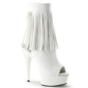 Pleaser プリーザー ブーツ 15cm ヒール 白 ホワイト ブーツサンダル ブーティサンダル フリンジ 厚底 ショート サイド ジッパー アンクル サンダル ピンヒール オープントゥ ハイヒール つや消し 大きいサイズ 靴 イベント 女装 コスプレ DELIGHT-1019 DEL1019/WPU/M 取寄