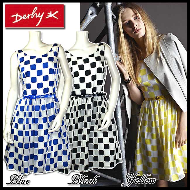 春夏 【合わせ買い対象】フランス "Derhy" ルネデリーバイヤーIKUKOお薦め!お洒落なスクエアー ワンピース ブルー系とブラック系とイエロー系 サイズSとM【当初26852】【ルネデリ】