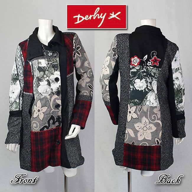 【合わせ買い対象】OUTLET フランス "Derhy" ルネデリーバイヤーIKUKOお薦め! ブロック切替とフラワー刺繍が綺麗なロングコート【ウール混】 サイズS 【当初31204】【ルネデリ】