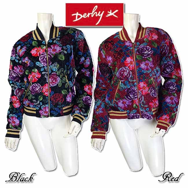 【合わせ買い対象】OUTLET フランス "Derhy"バイヤーIKUKOお薦め!配色が綺麗なローズ柄 ブルゾン サイズSとM【当初23796】【ルネデリ】