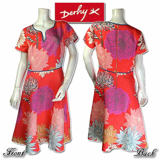 春夏 【合わせ買い対象】 春夏 フランス "Derhy"ダリアの花柄が印象的なワンピース サイズM【当初21852】【ルネデリ】【新着商品】