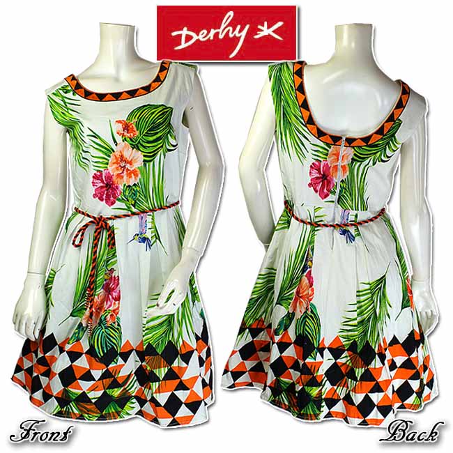 春夏 【合わせ買い対象】 春夏 フランス "Derhy" ルネデリー トロピカル柄が綺麗なワンピース サイズSとM【当初22685】【ルネデリ】【新着商品】