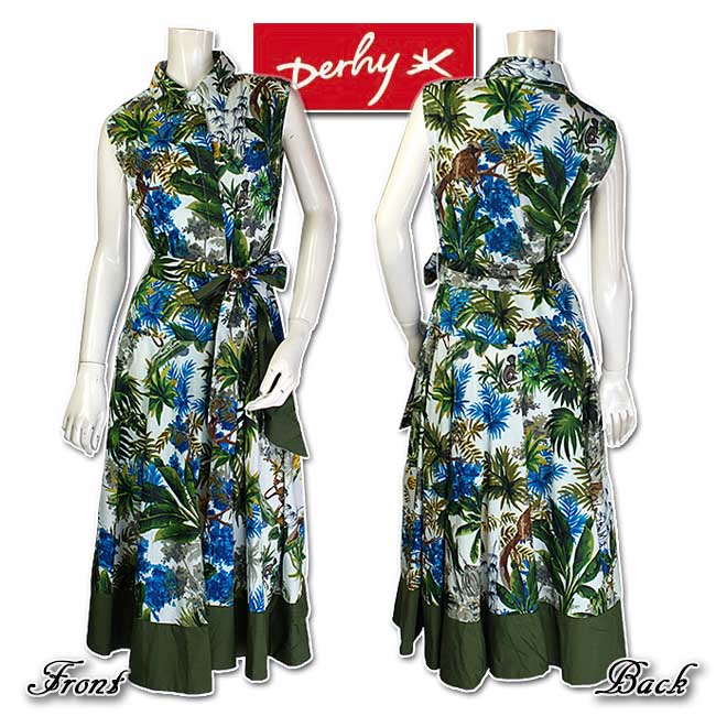 春夏 フランス "Derhy" モンキーが可愛いトロピカル柄ワンピース サイズS【当初20370】【ルネデリ】【新着商品】【最新着】