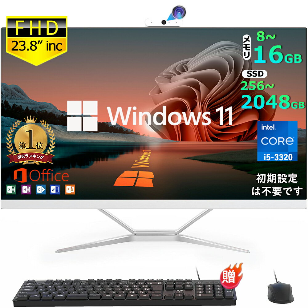 商品情報CPU 概要【Intel Corei5-3210m】コア数:2コア4スレッド(2.5~3.1 GHz)【Intel Corei5-3320m】コア数:2コア4スレッド(2.6~3.3 GHz)【Intel Corei5-4570】コア数:4コア4スレッド(3.2~3.6 GHz)【Intel Corei5-9300HQ】コア数:4コア8スレッド(2.4~4.1 GHz)【Intel Corei5-11400】コア数:6コア12スレッド(2.6~4.4 GHz)【Intel Corei7-3610】コア数:4コア8スレッド(2.3~3.3 GHz)【Intel Corei7-4790】コア数:4コア8スレッド(3.6~4.0 GHz)【Intel Corei7-9750H】コア数:6コア12スレッド(2.6~4.5 GHz)【Intel Corei7-11800H】コア数:8コア16スレッド(2.3~4.6 GHz)【Intel Corei7-8809G】コア数:4コア8スレッド(3.1~4.2 GHz)【Intel Corei7-13700H】コア数:16コア24スレッド(3.0~5.0GHz)21.5/23.8インチRAM:8G/16GSSD:128~2048GB画面サイズ21.5/23.8インチ【ハイスペックパソコン】デスクトップパソコン インテル Core i5/i7、更に、より優れたプロセス技術を採用しており、より効率的な動作を実現します。これにより、高い性能を提供しながらも、低い消費電力で動作することが可能となります。512/1024/2048GB高速SSDハードディスク搭載し、高速起動します。前世代のプロセッサーより効率が抜群に上がります。 仕事や学業、動画鑑賞、プライベートでの作業など、さまざまな用途に活用できます【21/23型 狭額縁ベゼル・IPSパネル 】1920x1080 スペクト比21:9 21/23インチのウルトラワイドモニター。画面占有率99% 高精細な2K解像度。卓越した色再現性で、空気感のある高画質を細かく映ります。ウルトラワイドモニターは臨場感があふれる体験をもたらし、動画・映画を存分に楽しめます。視野角178度の優れたIPSが採用され、色の正確さと広い視野角を両立。普通のVAやTNディスプレイと比べれば、より広い視野角が実現され、ウルトラワイドモニターの広さに完璧に適応してほしい思いが込まれているデザインでございます。さらに、機身自体の角度も調整可能で、上30 度/下15 度(±2°) 、左右30 度 (±2°) となっています。あらゆる角度からもはっきり見えます【OS&付属ソフト付】一体型パソコン Windows11搭載 MS Office 付き。最新のWindows11はソフトの起動やファイルの読み込み、Webページの閲覧など、日常的な業務がより快適に進行しています。さらに、オフィスが認証済みでインストールされ、無料で使えます。初期設定済で、初心者でも手軽に使えます。多様な機能が整えられ、一機で全カバー。煩わしいゲーブル管理と別れる一体化デザインが採用され、省スペースに益する便利性の高い一体型デスクトップとなっています【豊富な接続端子+無線通信】多画面出力(HDMI)、USB 3.0*4、LANポート、VGA、オーディオ端子。(WEBカメラ搭載)(明るさを調整しない)。5G Wi-Fi /Bluetooth対応、家庭やオフィス環境で無線ネットワークにシームレスに接続し、高速インターネット体験を楽しむことができます。【品質保証】三年間保証 メーカー希望小売価格はメーカーサイトに基づいて掲載しています メーカー希望小売価格はメーカーサイトに基づいて掲載しています メーカー希望小売価格はメーカーサイトに基づいて掲載しています【楽天ランキング1位!】デスクトップパソコン 一体型pc 21/23型 フルHD液晶一体型 デスクトップパソコン インテル Core 7【Windows 11搭載】USB 2.0 USB 3.0 5G WIFI搭載 一体型パソコン メモリー16GB SSD 2TB PSE認証済 【MS Office搭載】 一体型パソコン Win11搭載!初心者にも安心の初期設定済み! 在宅勤務・Zoom 一体型pc 無線搭載 初心者向け テレワーク応援 学生向け 5