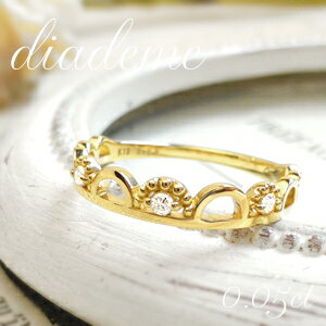 K18 K10 天然 ダイヤモンド 計0.05ct ミル打ち ティアラ リング 1号-16号 送料無料 高品質 18金 10金 ゴールド