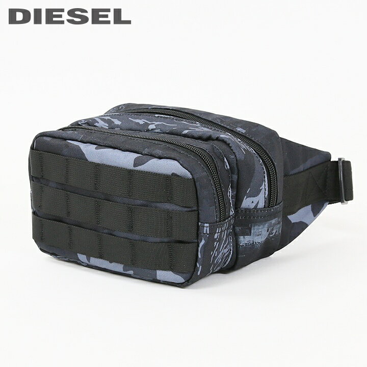 DIESEL ディーゼル ウエストポーチフロントWポケット付きボディーバッグ迷彩グリーン 迷彩グレーブラック カーキグリーンロゴプレート ウエストバッグファスナーポケット ヒップバッグBODY BAG鞄 カバン かばん