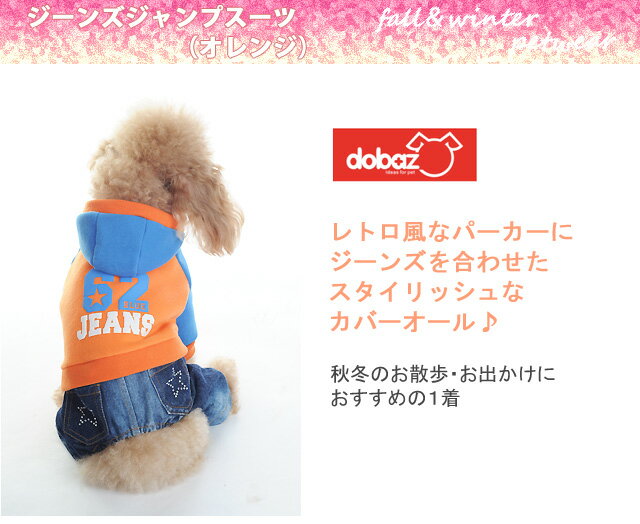 【メール便可】DOBAZ(ドバズ) 秋冬 ジーンズジャンプスーツ (オレンジ)ドッグウェア(Sサイズ)【Q】